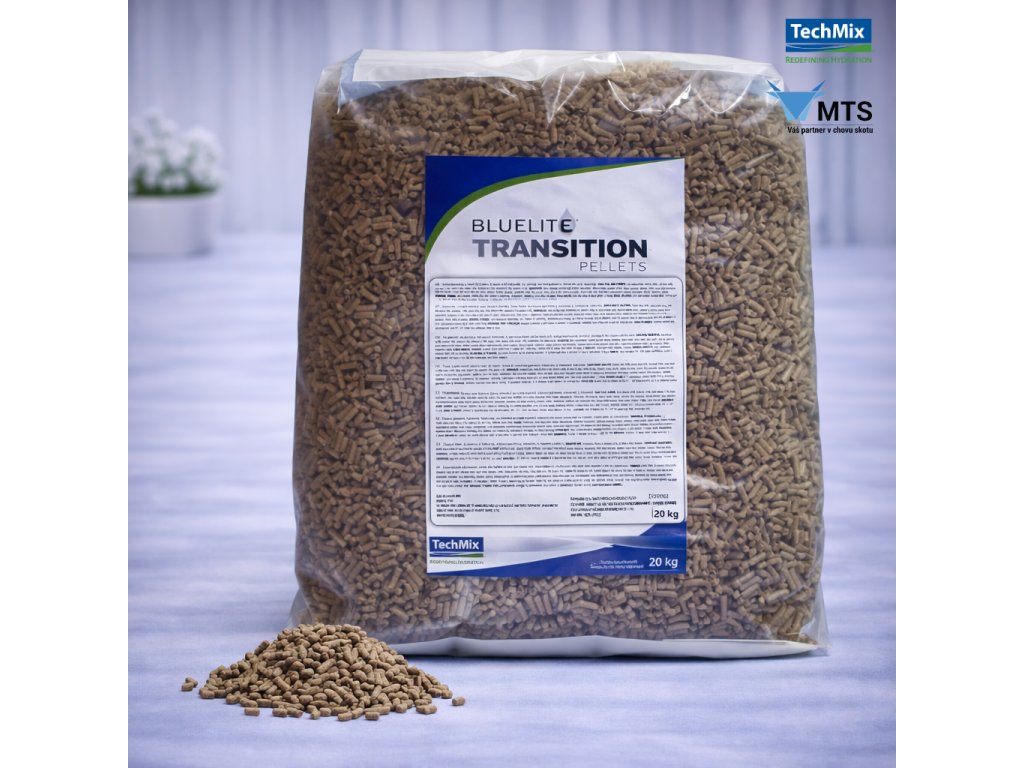 BlueLite® Transition Pellets jsou zdrojem elektrolytů, energie a probiotik. Vznikly kombinací produktů na bázi konceptu BlueLite efektivní rehydratace a konceptu probiotické podpory pomocí živých, aktivních kvasinek. Prostřednictvím jednoho produktu tak máte možnost zajistit dostatečný příjem tekutin a k tomu navíc výrazně stimulovat správné trávení a vyšší příjem sušiny, což v konečném důsledku vede k té nejefektivnější podpoře vysoké mléčné produkce doprovázené i lepším zdravotním a reprodukčním stavem zvířat. Transition Pellets jsou prostředkem, jak dát plemenicím vše potřebné pro překonání stresových podmínek v obdobích vysokého tepelného stresu a nebo během tranzitní periody.
