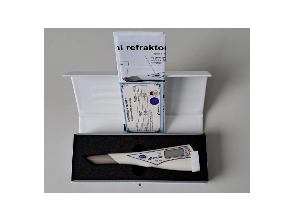 Ruční digitální refraktometr PEN-PRO pro kontrolu kvality kolostra zobrazující hodnoty na stupnici BRIX %.