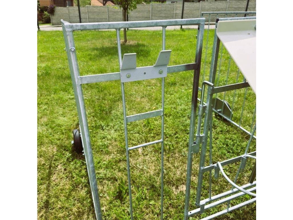 - osazena brankou, venkovními držáky na krmení a manipulačním madlem